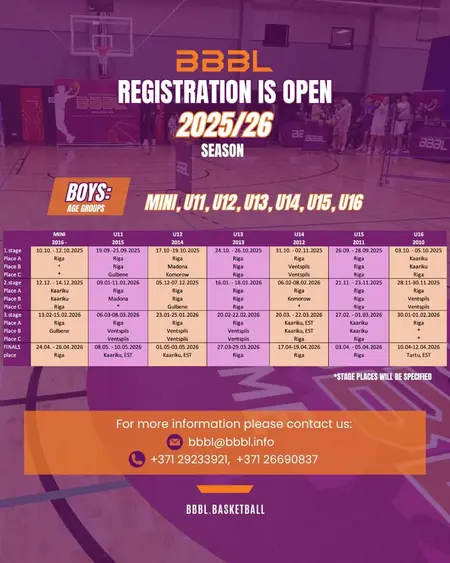 BBBL boys season 2025/2026 is officially open! Sohopo Basketball Mārupes NSS Basketbols All games live on YouTube.com, BBBL TV all game stats and news - www.bbbl.basketball Get the best from BBBL ...